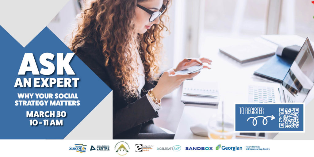 Business leaders from across Simcoe County are invited to join us on March 30, 2022 from 10 a.m. to 11 a.m. for an Ask an Expert session on why your social media strategy matters. Join us to gain enthusiasm and excitement for social media, as you learn tangible strategies that you can begin to implement that will support your business goals.